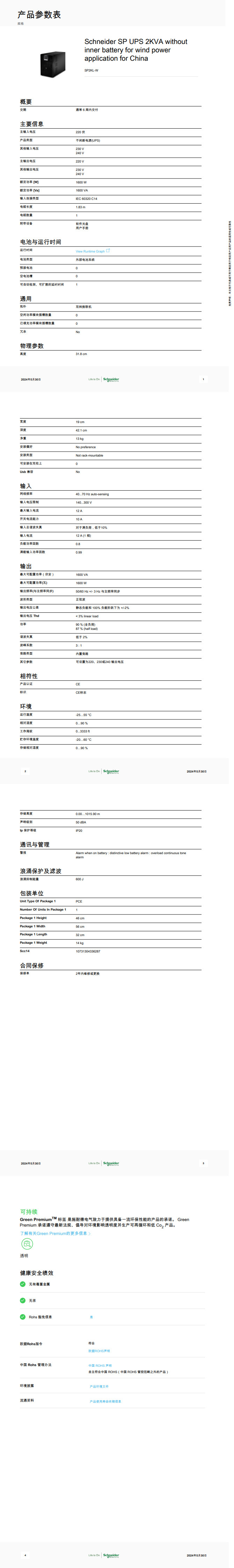 • 产品描述:Schneider SP UPS 2KVA without inner battery for wind power application for China