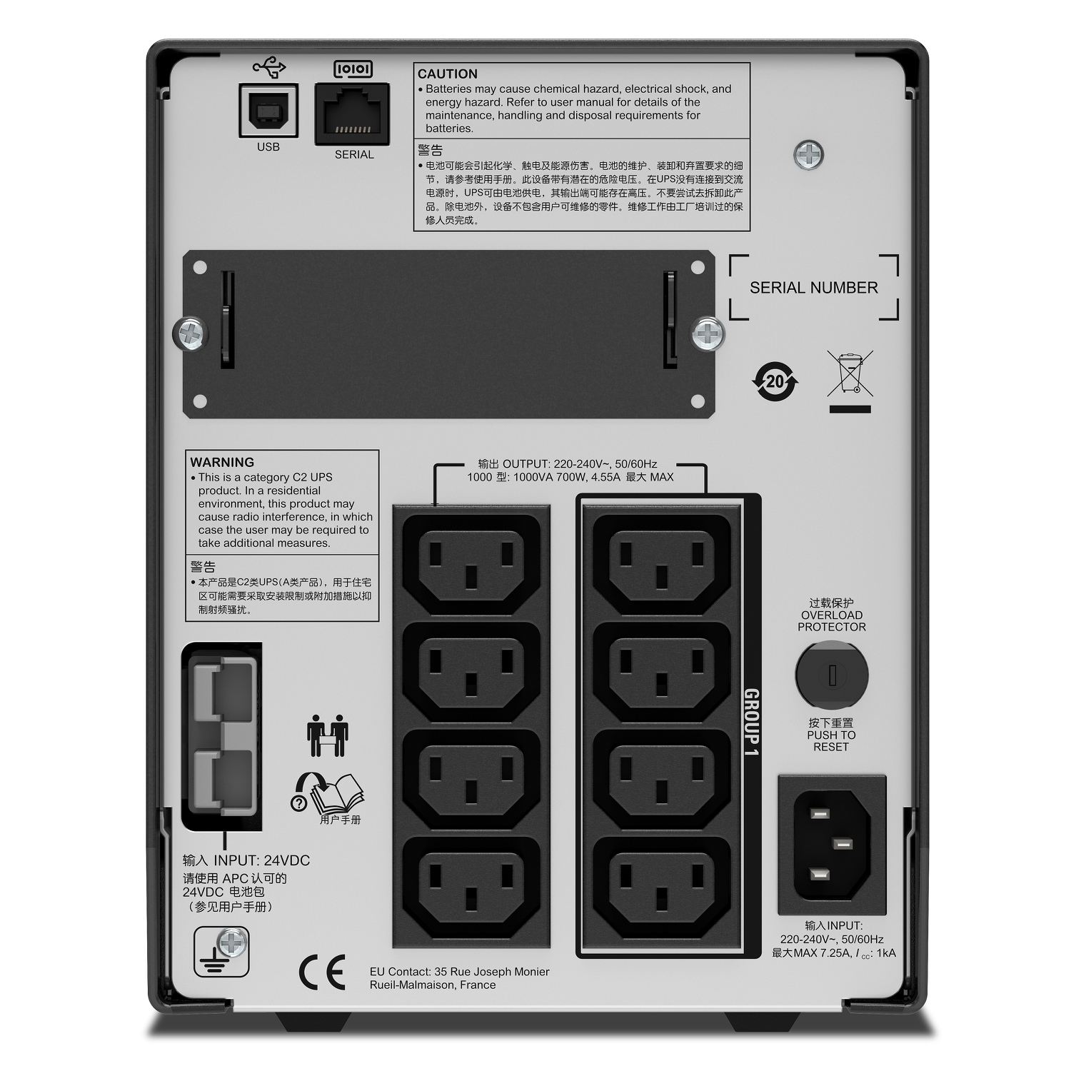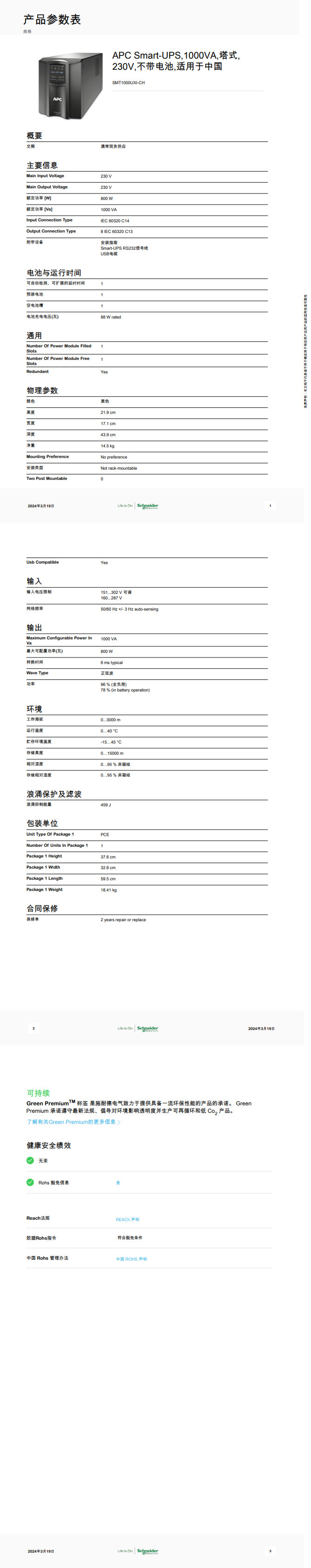 • 产品描述:APC Smart-UPS,1000VA,塔式,230V,不带电池,适用于中国