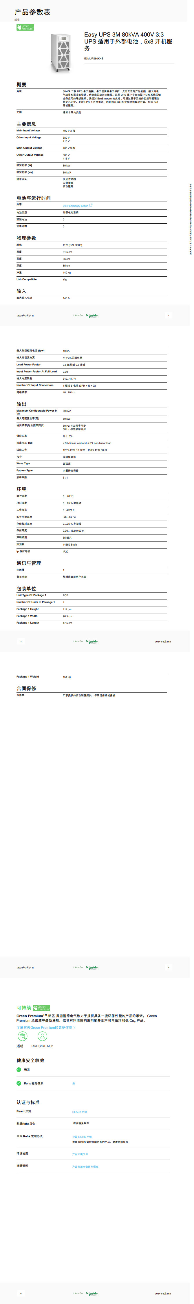 • 产品描述:80kVA 三相 UPS 易于连接、易于使用且易于维护,具有先进的产品功能,强大的电气规格和紧凑的设计,确保您的业务连续性。这款UPS 是中小型数据中心和其他关键业务应用的理想选择,凭借对 EcoStruxure 的支持,可通过基于云端的监控和管理让您安心无忧。此款 UPS 不自带电池,因此您可以轻松定制电池解决方案。包括 5x8 开机服务。