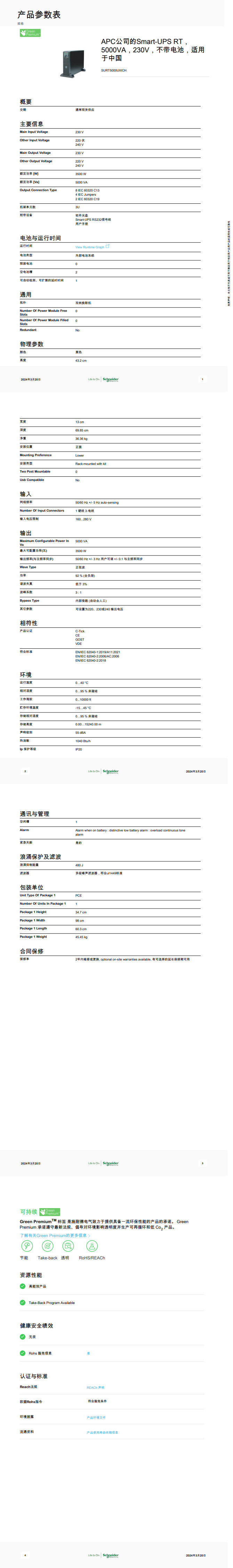 • 产品描述:APC公司的Smart-UPS RT,5000VA,230V,不带电池,适用于中国