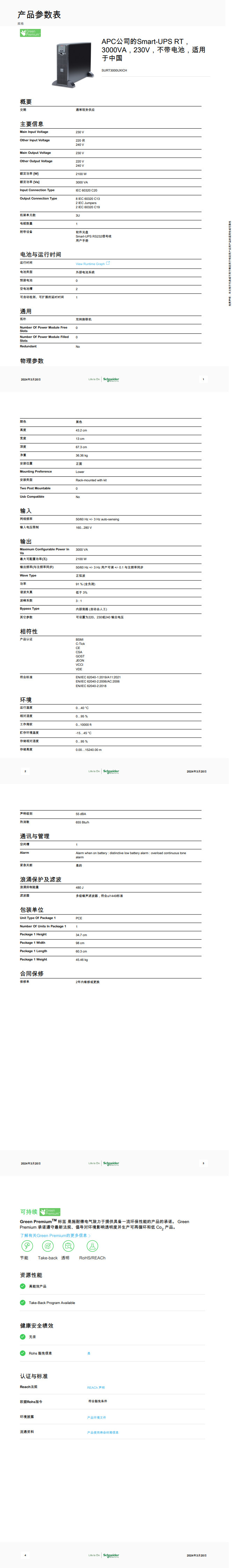 • 产品描述:APC公司的Smart-UPS RT,3000VA,230V,不带电池,适用于中国
